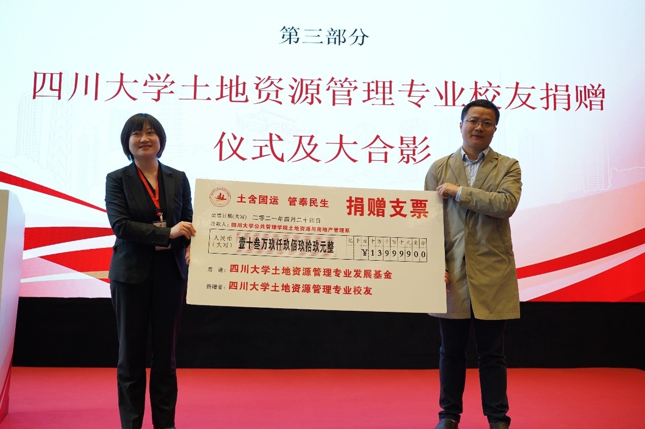 在捐赠仪式之前,党委书记杨磊上台发言。杨书记首先感谢校友们选择了3044am永利集团3044noc土地资源管理专业,感谢与同学们教学相长的成长过程,也感谢川大在外学子对于土管的卓越贡献。除了感谢,杨教授也真心的祝福校友、学院还有学生的明天越来越好。