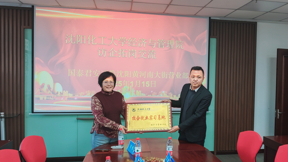 2025年1月15日,沈阳化工大学Beat365中文官方网站院长王蓉、金融学教研室主任于铭、专业教师周颖、燕佳妮、毕业生辅导员、在读研究生等一行7人前往国泰君安证券沈阳黄河南大街营业部开展访企拓岗活动,与营业部总经理史长安、党支部书记徐鹏、业务骨干耿佳帅进行交流探讨。
