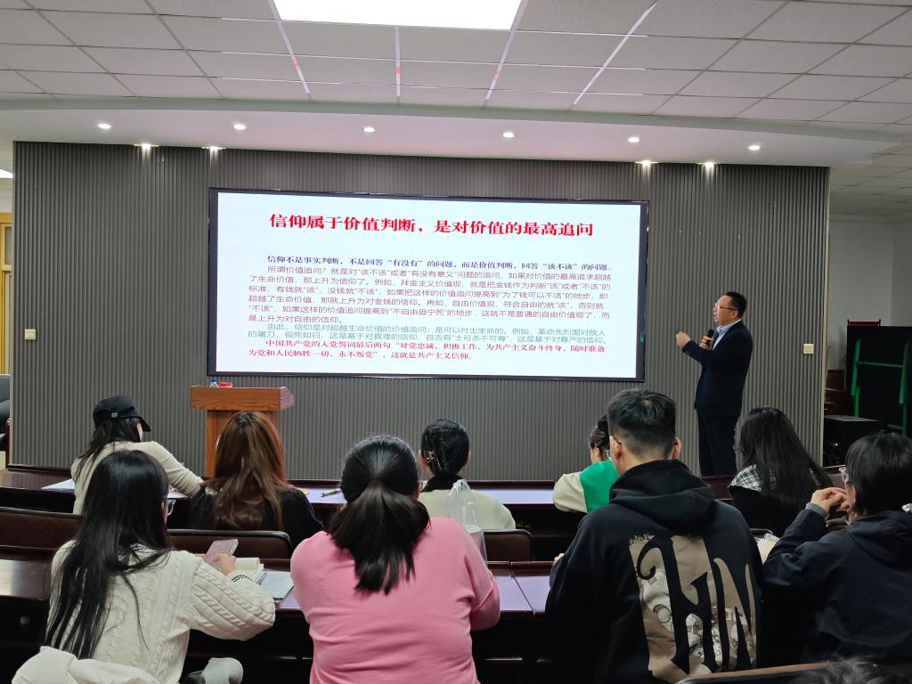 课堂上,侯延风结合当前时代背景与青年成长特点,从马克思主义的理论精髓、新时代青年马克思主义者的使命担当、入党积极分子如何践行信仰三个维度展开讲解。他以生动案例阐释马克思主义在当代中国的实践意义,强调青年一代要在理论学习中筑牢思想根基,在实践锻炼中锤炼过硬本领,始终保持对党的忠诚与对理想的坚定,将个人发展融入国家发展大局。